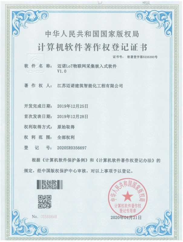 江蘇邁諾智能科技有限公司,成立于2016年,注冊資金1000萬元,公司主要致力于IT弱電系統集成與物聯信息化軟件的開發與推廣,通過在智能物聯網行業的持續深耕,不斷提升技術研發水平,公司逐漸形成了以AIoT管控平臺為核心,以自主研發的專項數字化軟硬件產品為支撐,為智慧城市多個領域(智慧醫療、智慧交通、數據中心、智慧社區、智慧建筑等)提供數字化整體解決方案的業務形態,逐步實現企業從單體弱電智能化項目到技術、產品、服務模式的升級與蛻變。